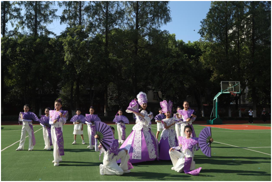 典礼在庄严的升国旗仪式中拉开帷幕。伴随着雄壮的《义勇军进行曲》,鲜艳的五星红旗冉冉升起,全体师生行注目礼,少先队员行队礼,场面庄严肃穆。随后,“纸韵童模迎开学”表演精彩上演。学校匠心独具,将非遗剪纸课程与迎新仪式深度融合,剪纸社团师生以“童话秘境”为主题,用巧手剪出一幅幅精美绝伦的图案:翩跹的蝴蝶、美丽的树木和森林穿在身上,彰显出独一无二的创意。童模们在音乐中以自信和活力展现出的精彩,赢得了阵阵热烈掌声。