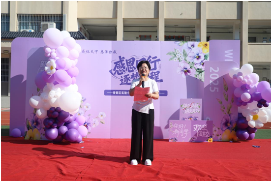 最后,校长黎晓涢发表了热情洋溢的新学期致辞,对同学们走进新学期表示热烈欢迎,同时结合抗战胜利80周年深切勉励同学们感恩奋进,逐梦前行,鼓励老师们不忘初心,潜心育人。