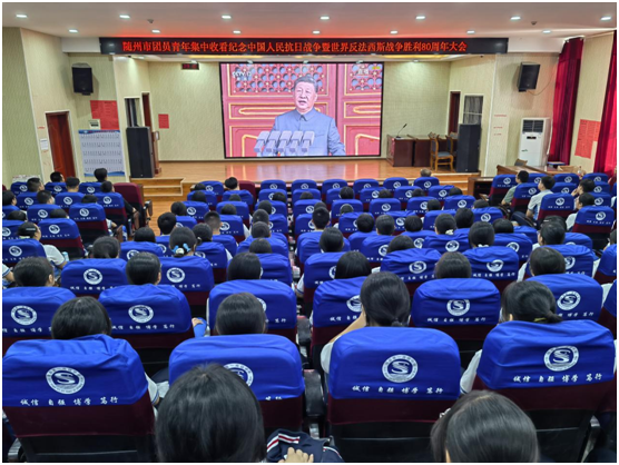 随州新闻网讯 (通讯员王伟、邓鹏)9月3日,由团县委组织的团员青年集中收看纪念中国人民抗日战争暨世界反法西斯战争胜利80周年大会活动在随县一中举行。此次活动旨在深入学习习近平总书记关于中国人民抗日战争和世界反法西斯战争的重要论述,引导广大青少年厚植家国情怀、赓续红色血脉。