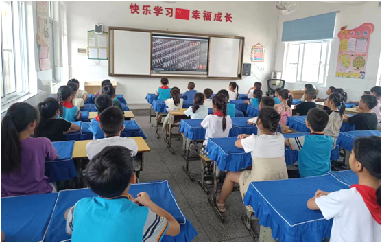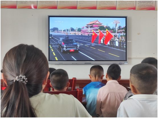 当天上午,学校组织师生在教室观看阅兵直播。国歌响起,师生全体起立高唱,歌声表达着对祖国的热爱与敬意。看到习爷爷挥手致意,学生们兴奋挥舞国旗欢呼。“我看见习爷爷啦!”一个小男孩的喊声满是自豪。