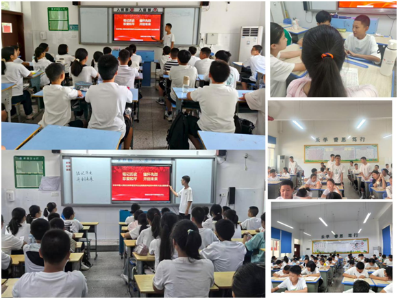 当天上午,学校门口的电子屏早早闪亮,滚动播放着“隆重纪念中国人民抗日战争暨世界反法西斯战争胜利80周年”“铭记抗战历史,缅怀英烈伟绩,汲取奋进力量”等主题宣传标语,在师生步入校园的第一时间,将铭记历史、致敬先烈的种子悄然播撒。
