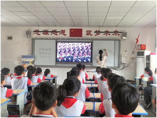 学校在观看之前通过校内外显示屏营造了庄重的红色氛围,并对学生进行“铭记历史,缅怀先烈;珍爱和平,开创未来”的爱国主义教育。阅兵式上,整齐的方阵、先进的装备,让师生们深受震撼。这盛大的场面激发了师生们浓浓的爱国热情,也点燃了教师们干事创业的精气神。他们表示,将以更饱满的热情投入到教育教学工作中,为培养祖国未来的栋梁之才贡献力量。学生们纷纷写下自己的爱国誓言,努力学习,担当重任。五(5)班学生代表黄歆然说:“思源感恩,筑梦未来。阅兵式让我知道了今天的幸福来之不易,我要倍加珍惜,主动学习,成长为担当有为的好少年,长大了,也要保卫祖国,建设祖国。”