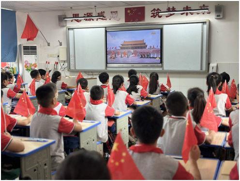 随州新闻网讯 (通讯员孙海林)9月3日,曾都区实验小学组织全体师生观看中国人民抗日战争暨世界反法西斯战争胜利80周年阅兵直播。校园内,每个教室都肃然安静,当国旗在屏幕中升起时,全体队员迅速肃立,庄严地向国旗行队礼,眼神中满是崇敬与自豪。