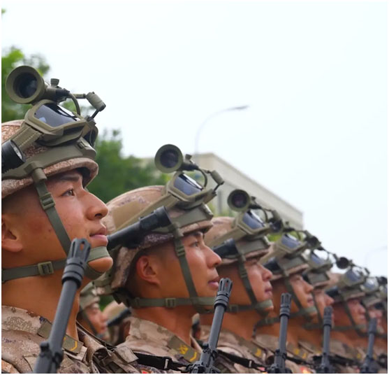 图左二为随州职业技术学院文化旅游产业学院2020届毕业生邱傲训练时照片,该照片登载在人民日报微信公众号8月27日《最新阅兵宣传MV,高燃来袭!》