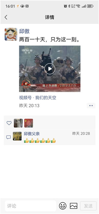 凭借过硬的军事素质和专业技能,邱傲逐渐成长为所在单位的伞训教员和重装空投骨干,熟练掌握跳伞、空投、驾驶等多项军事技能。2025年2月起,经过报名、体检、训练考核等多轮筛选,邱傲参加了为期七个月的集中训练,最终以优异表现入选阅兵装备方队,光荣通过天安门广场,以昂扬的姿态接受党和人民的检阅。