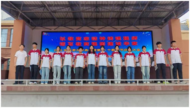 开学典礼在雄壮的国歌声中拉开序幕,全体师生面向国旗,齐唱国歌。国歌嘹亮,激荡着全体师生的爱国情怀,也吹响了新学期奋进的号角。