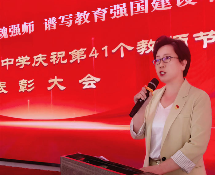 学校党支部书记、校长徐正艳为活动致辞,向全体教师送上最诚挚的节日祝福。她在讲话中寄语全校教师要同心同向,牢记集体主义责任感,从榜样身上汲取力量,在坚守中织就教育最动人的图景。她勉励青年教师,要怀揣坚忍不拔之志,以爱为灯,以责为舵,在教育的海洋中破浪前行。“沉舟侧畔千帆过,病树前头万木春。”教育的航程中,或许有过沉舟,有过病树,但只要心怀希望,携手前行,便一定能看到千帆竞发、万木争春的壮丽图景。