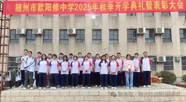 随州新闻网讯 (通讯员余军威)9月9日,随州市欧阳修中学全体师生齐聚运动场,隆重举行2025年秋季开学典礼。这场以"秋日启新程,表彰促奋进"为主题的盛会,既是对过往成绩的总结,更是新学期的启航号角。
