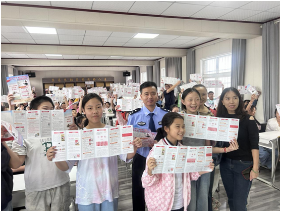 活动中,民警同志通过案例讲解、互动问答等方式,用通俗易懂的语言向学生揭示了常见诈骗手法,叮嘱大家“不轻信、不转账、不透露”;司法所工作人员结合生活实际普及法律常识,引导学生树立法治观念;社区志愿者则通过实物展示和宣传册发放,详细讲解禁鞭规定与禁毒知识,警示烟花爆竹和毒品的危害。此外,防溺水宣传环节通过情景模拟和救生知识介绍,增强了学生们的自我保护意识。