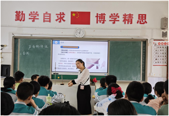 与此同时,长岗中学聚焦学科教学实效,开展“深入课堂观实效、课后研讨提升”专题教研活动。殷海伦老师与伍随中校长分别执教物理学科入门课:殷海伦老师在《声音的特性》一课中,通过多次演示实验与多媒体展示,将物理知识与生活实际结合,清晰阐释核心概念;伍随中校长则在《声音的产生与传播》教学中,借助学生动手实验、真空闹钟实验视频等直观方式,引导学生探究知识,有效突破教学重难点,两节课均践行“以学生为主体、探究建构知识”的理念,课堂氛围活跃。课后,理化生教研组集中评课,从实验设计、学科语言规范性等方面进行专业点评,为教师优化课堂提供方向。
