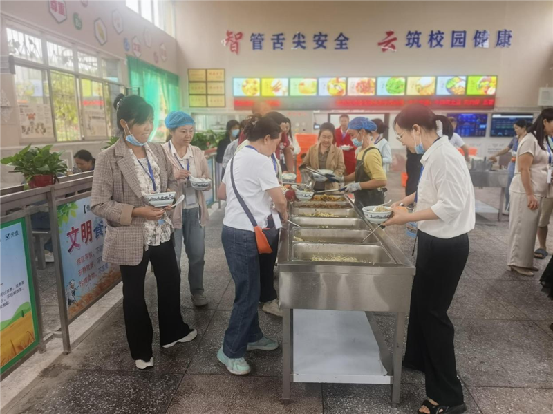 随州日报讯(通讯员艾猛)“这道菜口感鲜嫩,孩子肯定爱吃!”“食材溯源系统扫一下就能看到来源,太让人安心了”…… 9月17日上午,随县唐县镇第二中学校园开放日活动现场,家长们围坐餐桌品尝学生餐,对着展台看板上的数字平台频频点头,现场不时响起赞许的议论声。本次开放日以 “透明餐饮・守护成长” 为主题,将数字食堂建设作为核心展示内容,通过品餐评餐、数字运营演示、实地参观、家委会组建等多元形式,搭建起家校协同监督的沟通桥梁。