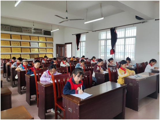 活动针对不同年级学生特点分层设计:一二年级学生聚焦“社会主义核心价值观”书写竞赛,孩子们手握笔杆,一笔一划认真书写,在规范字迹的同时,将“富强、民主、文明、和谐”等24字核心要义深深印刻在心中;三至五年级学生则同步参与校纪校规与核心价值观检测,通过答题进一步明确校园行为准则,深化对核心价值观的理解。