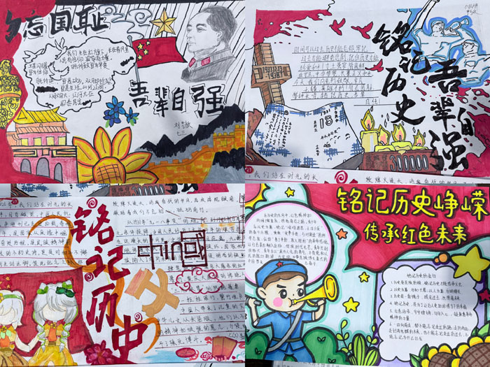 围绕“铭记历史、缅怀先烈”核心,学校开展两项特色活动,一是“为抗战英雄写一封信”,让学生以文字为桥梁与英雄“对话”,在倾诉敬意中深刻理解“九一八”事变的历史意义,增强民族责任感与使命感;二是“铭记九一八,共筑中国梦”手抄报创作,活动得到全校师生积极响应,学生们以画笔勾勒历史瞬间、用色彩传递爱国信念,将红色记忆融入创作实践。