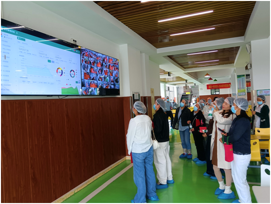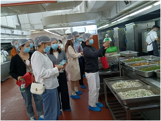 随后,家长们在管理人员引导下走进食堂后厨,参观更衣室、加工间、留样室等区域,详细了解食材处理与餐饮制作流程,对规范的细节管理表示认可。
