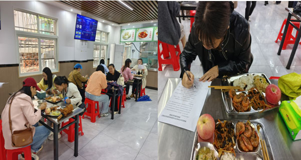 活动的最后环节,家长代表们在食堂管理人员的引导下,实地参观了食堂后厨的清洗区、加工区、烹饪区、消毒间等,对环境卫生、设施设备、操作规范有了更直观的了解。随后,家长们齐聚餐厅,亲身体验了学生的日常午餐。色泽诱人、搭配合理的菜品,以及可口的风味,获得了家长们的高度评价。