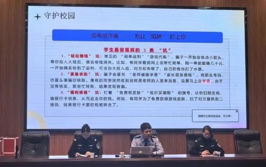 本次讲座由肖警官主讲,他结合近年来未成年人安全事件典型案例,以“贴近学生、贴近生活”为原则,围绕核心安全领域展开深度讲解。针对校园欺凌、防电信诈骗、禁毒教育等热点问题,以“法条+案例”的通俗方式,让学生真切明白“法律就在身边,违法必有代价”,引导大家从小养成尊法、学法、守法、用法的好习惯。 讲座互动环节,民警同志为现场每位学生发放了精心准备的禁毒宣传册、防诈骗等知识手册,鼓励大家“把手册带回家,和家长一起学习”,让一份份宣传册成为“校园-家庭”安全联动的纽带,推动形成“学生学安全、家长懂防范”的家校共育安全格局。