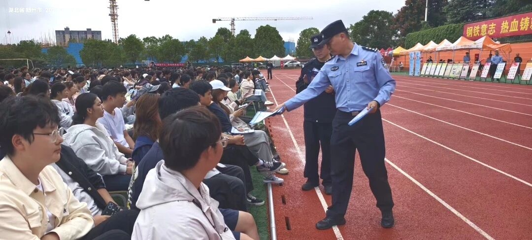 活动中,涢水派出所民警围绕反诈、反邪、禁毒、防盗、防欺凌、交通安全等内容,为随州职业技术学院和机电工程学校4100余名新生送去“开学礼”,引导广大新生扣好人生安全“第一粒扣子”。此次活动还邀请了省公安厅党风政风警风监督员现场指导。
