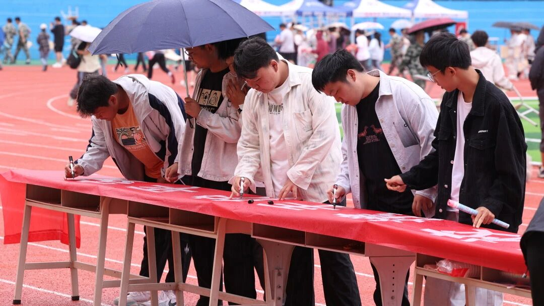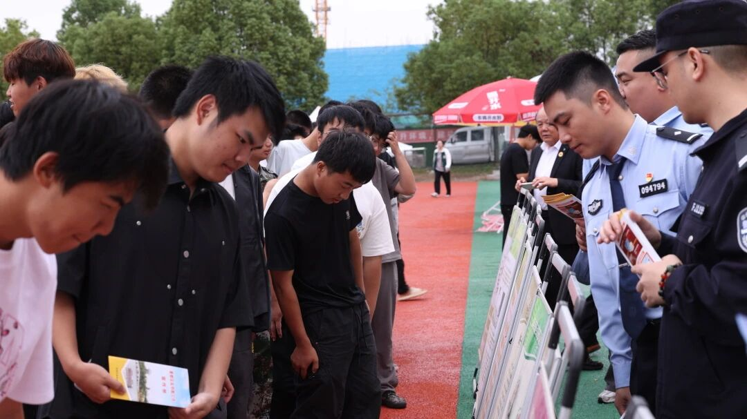 讲座结束后,全体新生开展了“法治宣传进校园,警校携手护平安”千人大签名活动。涢水派出所有序组织学生观摩反诈、反邪、禁毒、防盗、防欺凌、交通安全等宣传展板,逐一讲解相关内容。