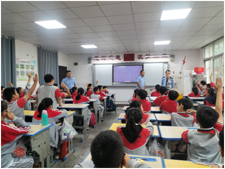 为避免传统法律宣讲的枯燥感,本次活动创新采用 “案例讲解 + 视频科普 + 互动问答” 的多元教学形式。在案例讲解环节,民警将法律知识融入学生熟悉的校园场景,让抽象的法条变得生动易懂;法律知识科普视频则以动画形式呈现,极大激发了学生的学习兴趣;互动问答环节中,学生们积极举手提问,“看到别人的好东西自己想要该怎么办”“看到有人欺负同学要不要管” 等问题得到民警耐心细致的解答,现场氛围热烈。