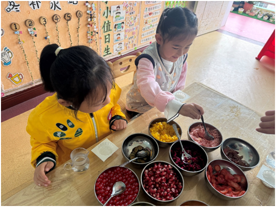 活动前,幼儿园已换上“节日盛装”,走廊悬挂着孩子们手作的五彩灯笼与鲜艳五星红旗,教室布置“嫦娥奔月”故事墙及“祖国我爱你”主题画展,让孩子们在沉浸式环境中初识中秋团圆意涵与国庆欢庆意义。