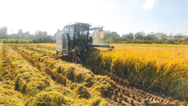 近日,在广水市陈巷镇,联合收割机在金色稻浪中有序作业,其秸秆粉碎装置将稻茬精准切碎至18厘米以下,紧随其后的打捆机则将秸秆迅速压缩成整齐草捆。
