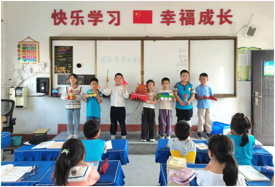 假期中,学生们积极投身于形式多样的实践活动中。他们或与国旗同框,定格对祖国的深情;或录制视频、唱响红歌,用纯真的声音传递祝福;更通过绘画、书法与手工制作,抒发内心的自豪。一幅幅精美的手抄报,一个个栩栩如生的天安门模型和航空火箭模型,无不闪耀着孩子们创意与匠心的火花。