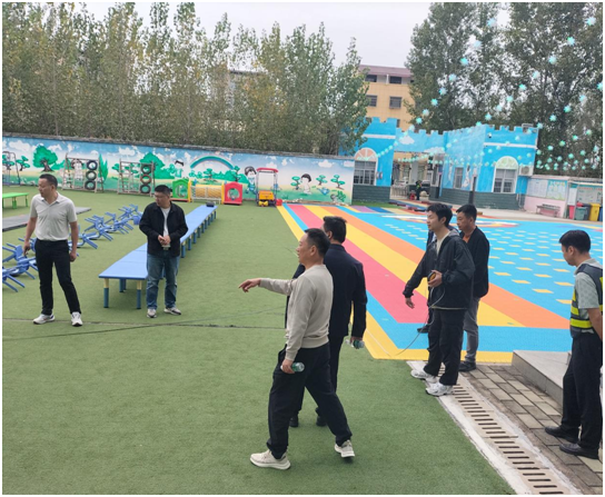 考察组首先对幼儿园拟建操场区域进行了细致的实地考察。结合幼儿身心发展特点和活动需求,对操场的整体规划、区域布局、功能设定等进行了深入研讨。特别强调在规划与未来的建设过程中,安全第一,始终将幼儿安全置于首位,所有设施与材料必须符合国家安全环保标准,地面铺设需注重缓冲性与防滑性,确保幼儿活动安全。对所用材料及施工工艺进行严格把关,确保操场建设质量过硬,经久耐用。
