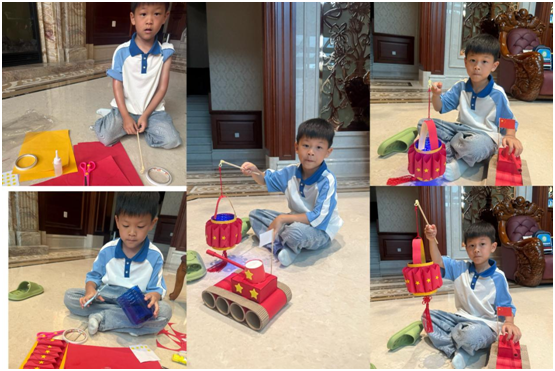 自双节来临前,幼儿园便向全体家庭发起亲子手工邀约,鼓励家长与孩子携手,以 “中秋团圆”“国庆华诞” 为创作核心,用环保材料、彩纸、黏土等打造特色作品。活动中,家长们耐心引导,孩子们积极动手,一双双小手与大手默契配合:有的制作出层次分明的 “祖国生日蛋糕”,奶油纹路间点缀,巨龙腾飞势不可当,有的制作着象征团圆的月亮、玉兔与中秋灯笼;有的用卡纸剪裁、拼接,还原出天安门城楼的红墙黄瓦与长城的蜿蜒壮阔;还有的发挥想象力,制作出昂首冲天的火箭、威风凛凛的坦克与翱翔蓝天的大飞机,将对祖国科技发展的赞叹融入作品。