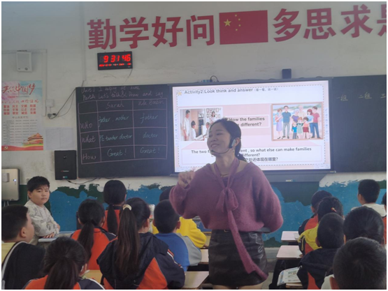 姜春、杨梦两位老师在校内分别执教汇报课,展示她们赴烈山湖学校参与“问题链的设计与应用”同课异构学习后的教学成果。姜春老师作为骨干教师,执教新人教版四年级上册《Part A Let’s talk》,以沉稳扎实的教学风格,呈现了一节以“问题链”为主线的示范课。杨梦老师作为青年教师,也以新人教版四年级上册《Part A Let’s talk》为课题,围绕“家庭成员职业”展开教学。她巧妙融合“问题链”理念与自身教学特色,设计了富有创意的教学环节。