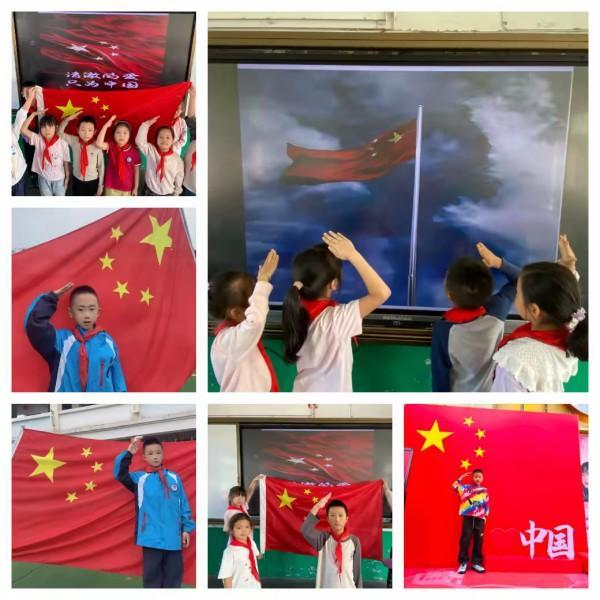 本次活动分两部分:一是开展向国旗敬礼活动;二是拿起画笔,用五彩的笔墨描绘对祖国山河的热爱。