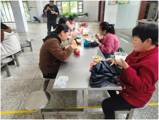 参观结束后,家长代表和学校师生一起共用午餐。荤素搭配、营养均衡的菜肴,以及水果,让家长们赞不绝口。“味道清淡健康,很适合孩子”、“没想到在学校能吃到这么丰富的菜式”,家长们一边品尝,一边与学校分管领导、食堂负责人进行座谈交流,亲身体验到学校食堂的饭菜质量。