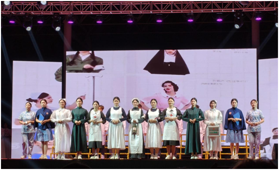 护理学院带来的舞蹈+走秀节目《白衣礼赞:护理礼仪秀》分为“洗手操”“护士服走秀”两部分,学子们动作标准地演示洗手流程,展现护理专业的严谨;走秀环节则展示了不同场景的护士服,尽显护理工作者的专业与端庄。节目既体现了护理专业的教学成果,也以‘’白衣天使”的形象,完美诠释了“敬畏生命、甘于奉献”的南丁格尔精神。