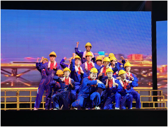 土木与建筑工程学院的舞蹈《建设者》,学生们身着工装,以刚劲有力的舞姿模拟建设场景,致敬平凡劳动者,引导新生树立“劳动最光荣、奋斗最幸福”的价值观。