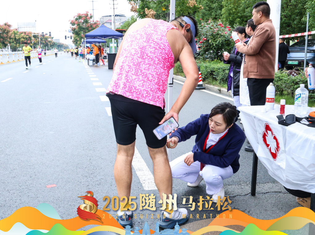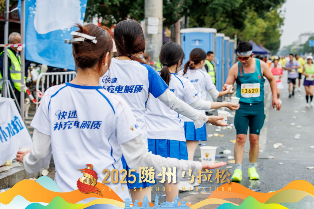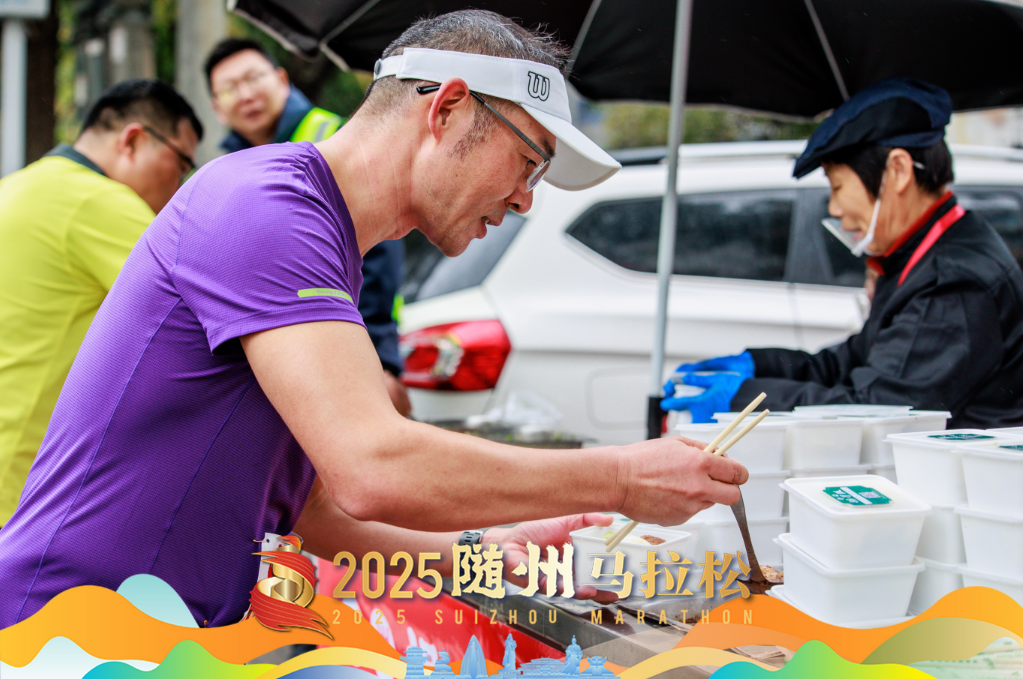 健民药业的员工们为选手们倒水千余杯,市中医医院带来了特制的跌打损伤膏药,随州邮政的小伙伴们守在涢水一桥上……随州企业、单位等纷纷在赛道沿线设置补给站,为跑者们送上补给,提供志愿服务。赛道终点,正大食品的炸鸡块、虎福瑞的蜂蜜麻花等随州特色,为选手补充能量。