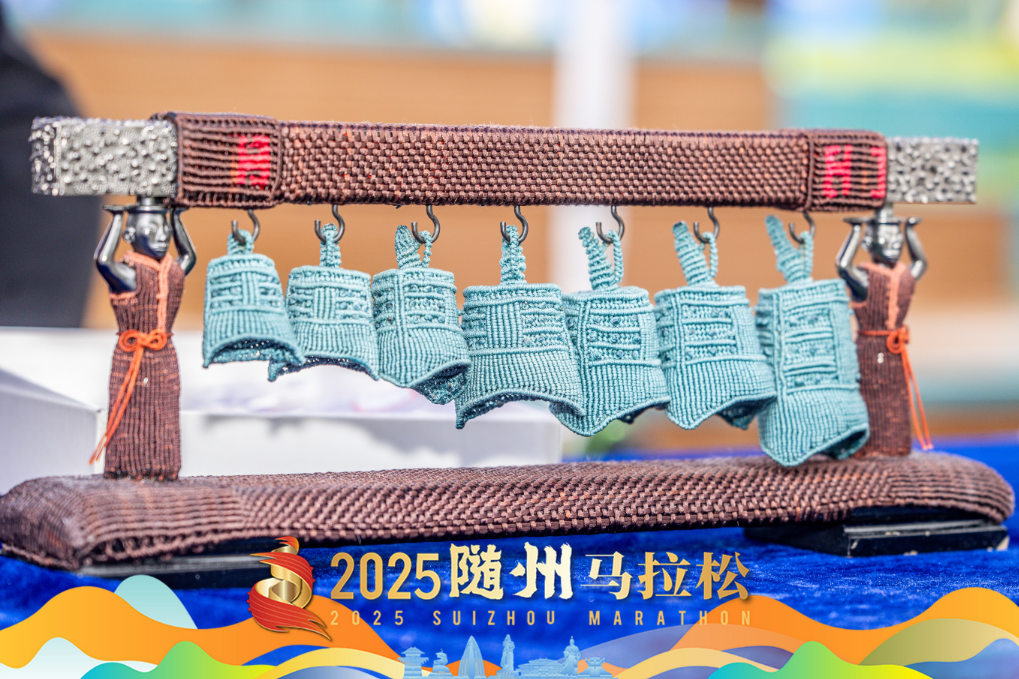 领奖台上,除了奖杯,获奖选手们手中的毛绒玩偶也备受关注。这是依据编钟推出的“敲友趣”系列文创玩具,圆滚滚、软萌萌,跑友们爱不释手。“从编钟之乡带回编钟玩偶,觉得非常有意义。”来自山西的选手周景说。另外,奖牌上印上有编钟与银杏叶图案,部分选手领到了炎帝文化纪念徽章。