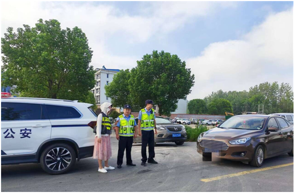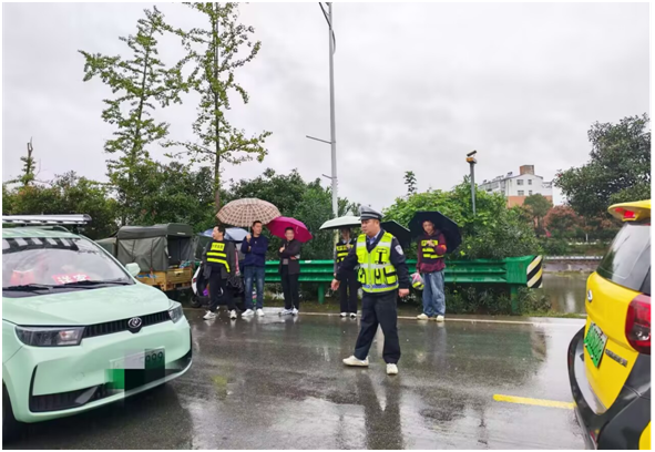 雨天里,民警们穿着反光背心,冒雨站在湿滑的路口,为骑电动车的学生家长撑起“安全伞”;烈日下,他们顶着骄阳坚守停车场、大桥边协调车辆通行,汗水浸透警服却从未后退半步。“孩子的安全是天大的事,我们多站一会儿,家长和老师就少一份担心。”民警的话语质朴却有力,警帽下的汗水与专注,成了校园周边最让人安心的风景。