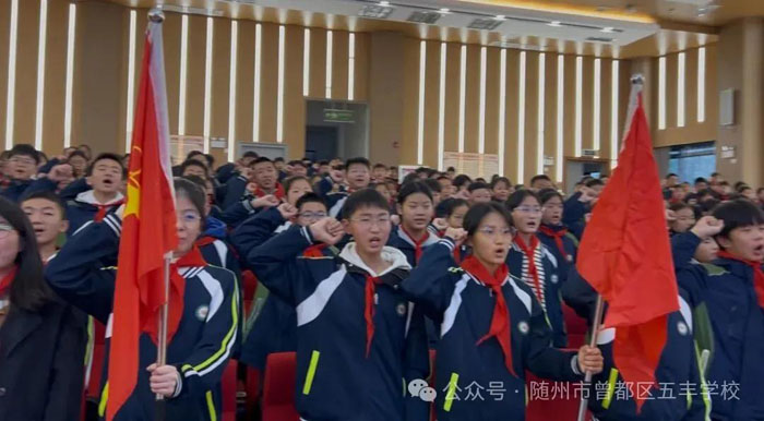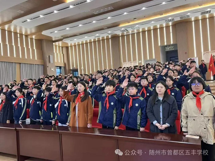 队旗飘扬处,少年成长时。本次建队仪式的举行,不仅完善了学校的少先队组织建设,更是一堂生动的爱国主义和集体主义教育课。愿曾都区五丰学校七年级学子以此建队日为起点,在初中新阶上,成为星星火炬下的时代好少年。