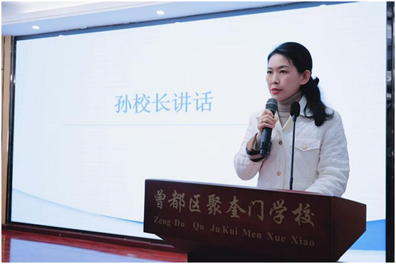 紧接着,党支部书记、校长孙秀芬在致辞中指出,孩子的健康与安全是学校一切工作的基石,“透明厨房”建设与“数字食堂”推进是学校优化服务、提升管理质效的关键举措。她呼吁家校双方继续增进理解、加强协作,汇聚更多智慧与力量,共同为孩子们营造一个不仅安全、健康,而且营养、美味的餐饮环境,助力其茁壮成长。