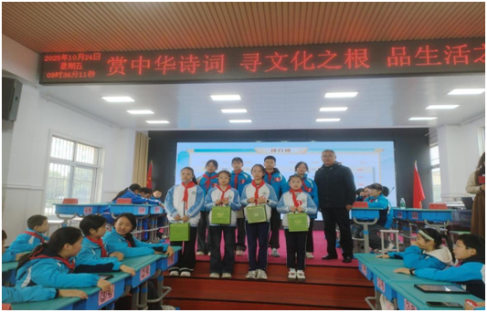 随州新闻网讯(通讯员罗航天)诗潮涌动,雅韵流长。10月24日,小林镇中心学校内诗意盎然,由该校承办的随县(随北协作区)中小学诗词大会决赛在此举行。十四支劲旅、五十六名学子以诗会友,同场竞技,近百名师生齐聚一堂,共同见证了一场传统文化的青春盛宴。