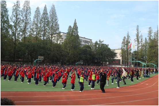大课间,与会人员移步操场,观摩3000余师生同锻炼的阳光大课间活动。整齐的队列、规范的动作、饱满的精神状态,展现出学校积极向上的校园氛围,活力十足的场景令在场同仁深受震撼。