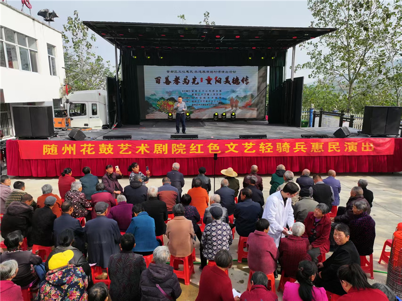 活动面向全村65周岁以上老年人免费开放,涵盖“健康守护+文化滋养+温馨相聚”三大核心内容:活动前期,大堰坡卫生院的专业医务人员为老人们提供基础健康检查、健康咨询等服务,把“健康礼包”送到长辈身边;随州花鼓艺术剧院红色文化轻骑兵带来精彩的文艺演出,用歌舞、花鼓戏、小品等喜闻乐见的形式,为老人们送上一场文化盛宴,丰富精神生活。