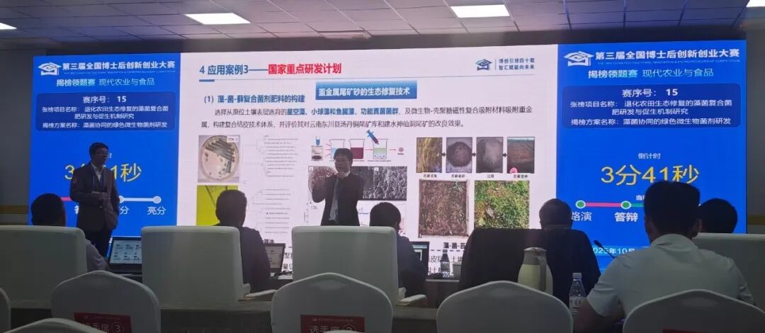 10月26日至28日,第三届全国博士后创新创业大赛在福建泉州晋江国际会展中心隆重开赛。经过三天赛事的激烈角逐和比拼,由湖北茂盛生物有限公司出题发榜、武汉大学博士后团队提供解决方案的“退化农田生态修复的藻菌复合菌肥研发与促生机制研究”项目,从766项技术攻关需求、894个揭榜方案中脱颖而出,经赛后汇总公证,以总分83.86高分成功摘得揭榜领题组(现代农业与食品赛道)金奖,这是茂盛生物自今年2月获批国家级博士后科研工作站以来,为随州乃至湖北博士后工作再添浓墨重彩的一笔。