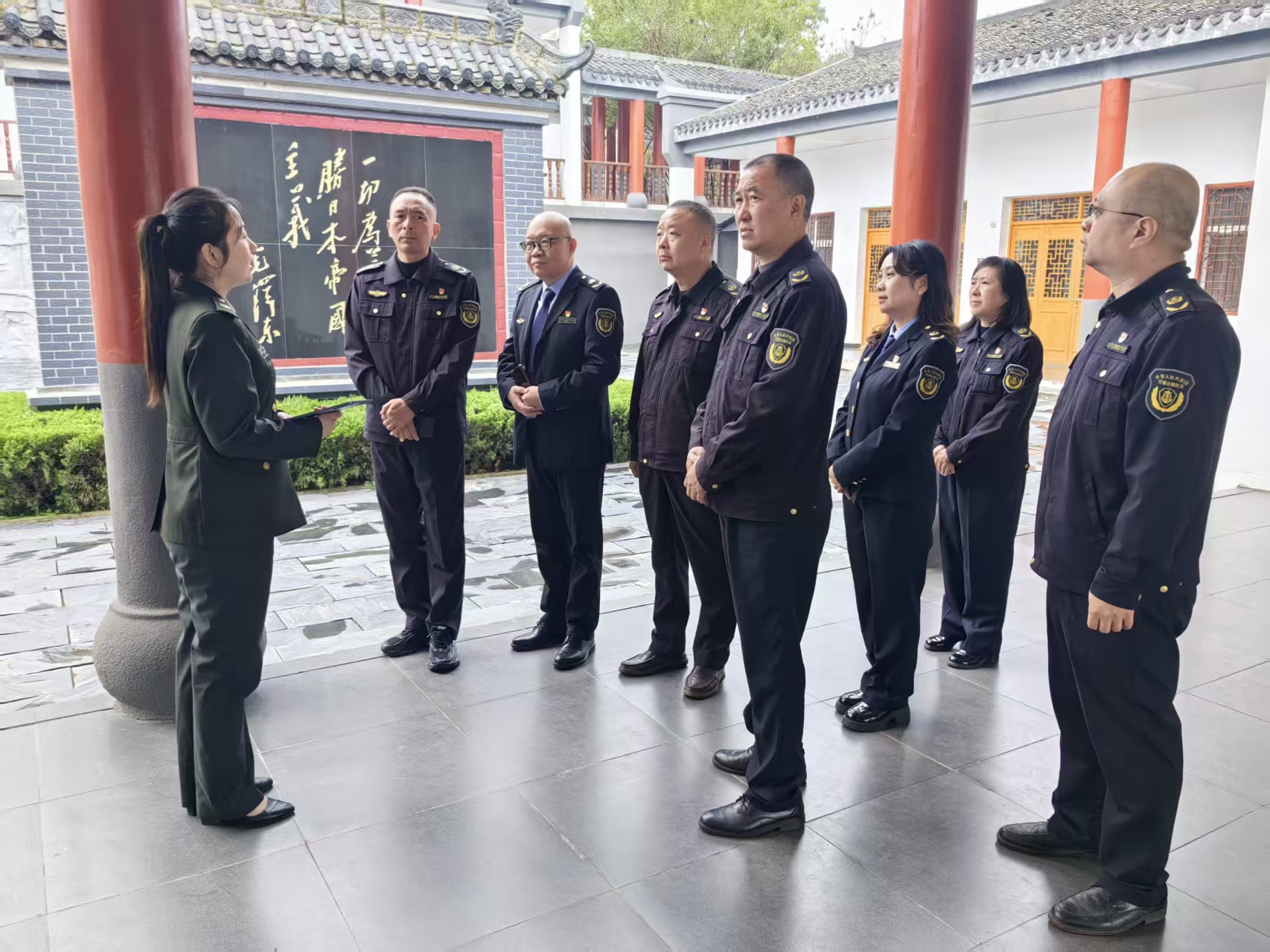 在纪念园内,一幅幅泛黄的历史图片、一件件承载岁月的革命文物,生动再现了李先念等老一辈革命家在随州这片热土上抗击日寇、救亡图存的峥嵘岁月。党员们循着革命先辈的足迹缓步前行,认真聆听抗日斗争史实讲解,在珍贵史料中感悟红色血脉的厚重底蕴,在先烈事迹中汲取奋进力量,深刻体会到“执法为民”的初心源于革命年代的为民情怀,“纪法严明”的作风传承自铁军队伍的纪律基因。