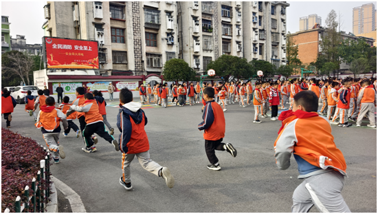 主题班会+应急演练,打造“沉浸式”安全课堂。周一班会时间,各班以“全民消防 安全至上”为主题开展班会,班主任通过趣味动画、真实案例、互动问答等形式,向学生讲解火灾成因、逃生路线标识、灭火器使用原理等核心知识,让抽象的安全常识变得直观易懂。班会后,全校师生参与消防应急演练。当警报声响起,各班在班主任指引下,捂住口鼻,弯腰低姿沿指定路线快速疏散,仅用时5分钟便全部安全抵达操场指定区域。