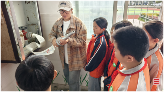实地探秘消防设施,解锁“身边”的安全密码。少先队辅导员高莹带领少先队员代表走进校园消防器材存放区,开展“认识我的‘安全卫士’”实践活动。高老师逐一讲解消防栓的组成部件、出水操作流程,演示消防水带的连接方法,还通过“摸一摸、认一认”的方式,让学生熟悉灭火器的类型、有效期识别技巧。“原来消防栓里藏着这么多‘机关’,以后看到这些设备,我就知道它们是保护我们的‘武器’了!”一名队员在体验后兴奋地说。
