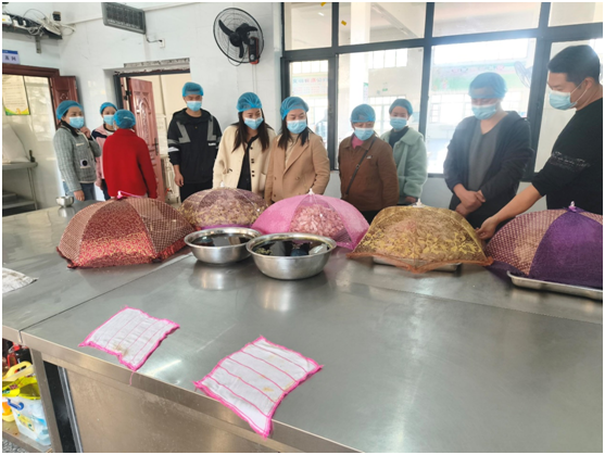 活动当日,家长们在食堂负责人的引导下,戴上一次性头套、鞋套和口罩,“全副武装”地开启了这次特殊的“探秘”之旅。从食材验收、仓储管理,到清洗切配、烹饪加工,再到餐具消毒、食品留样,每一个环节都毫无保留地呈现在家长面前。