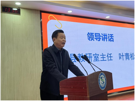 随县教研室主任叶青松讲话。他充分肯定了此次数学思维运动会的重要意义,指出这是推动随县素质教育深入发展的创新举措。叶青松表示,开展此类学科思维竞赛有助于激发学生学习兴趣,培养创新精神和实践能力,为随县基础教育高质量发展注入新动力。