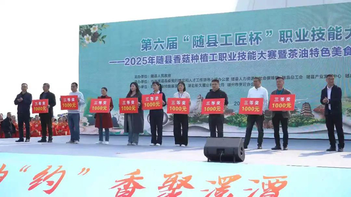 随州新闻网讯 (通讯员梁红玲、张琦、卢苇)11月4日,随县第六届“工匠杯”——2025年随县香菇种植工职业技能大赛暨茶油特色美食烹饪技能竞赛在澴潭镇油茶文化公园举行。近150名参赛选手同台竞技,全面展现了随县在香菇种植与茶油烹饪领域的技能水平与人才风采。大赛由随县人民政府主办,县委人才办、县人社局、县总工会、县产业发展服务中心、澴潭镇人民政府共同承办。