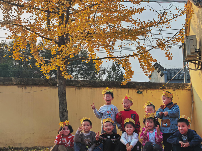 最后,孩子们戴着亲手做的皇冠,在银杏树下摆出各种可爱造型合影——阳光穿过叶隙落在笑脸和金冠上,成了这个秋天最温暖的画面。家长也点赞:“幼儿园的活动太用心,把秋天的美都装在了孩子笑脸上!”