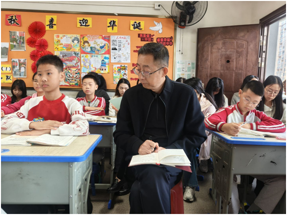 课堂内,老师们专注投入,他们不仅是听课者,更是教学艺术的品味者与同行者。校长们也坐在同学们中间,一起听课。他们专注地跟着课堂节奏,时而因为一个巧妙的互动露出欣赏的笑容。